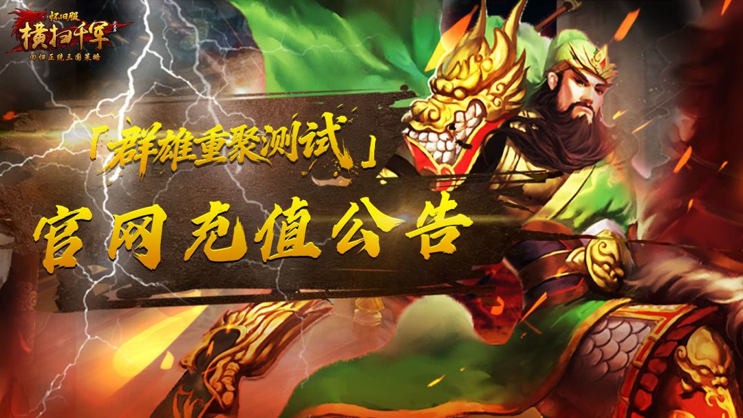 《横扫千军怀旧服》「群雄重聚测试」官网充值公告