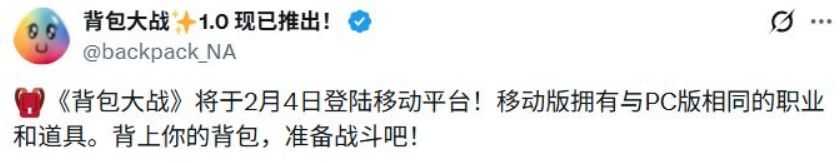 发行商IndieArk近日正式官宣,由德国独立工作室PlayWithFurcifer开发的爆款PC移植游戏《背包战斗》手游版,将于2月4日全平台发布,TapTap将同步开启发售通道。