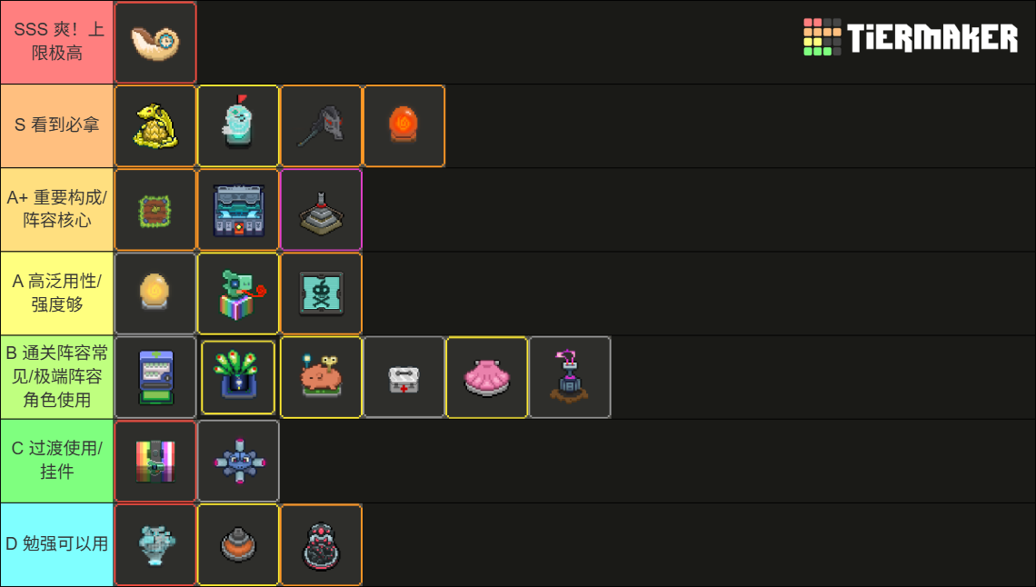 S:成形爽度高,强度高,泛用性高,拿到的话,通关率高