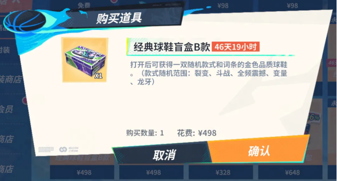 1月9日起,经典球鞋盲盒正式上架特惠商店,限时限购。购买球鞋盲盒,开盒即可100%获得一双词条金鞋,不用再愁抽不到词条啦!