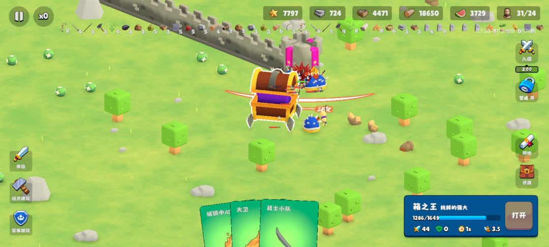 科技加到后面战锤兵的攻击间隔已经到0.07秒了,不知道最低是不是0.01;让士兵在外围开箱需在大本营作防御,可留大卫守/再派一队士兵/哨塔/石墙反伤,这样不用费劲调兵回防;有个细节:屏幕下侧有角色卡牌,双击卡牌可切换位置,如双击战士小队可将视角直接移至其所在地,对士兵开图的玩法来说,城镇中心与士兵卡牌切换可迅速转移视角,算是没有缩放功能的修补