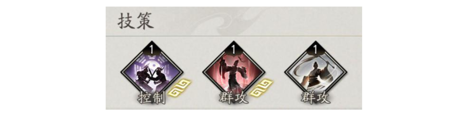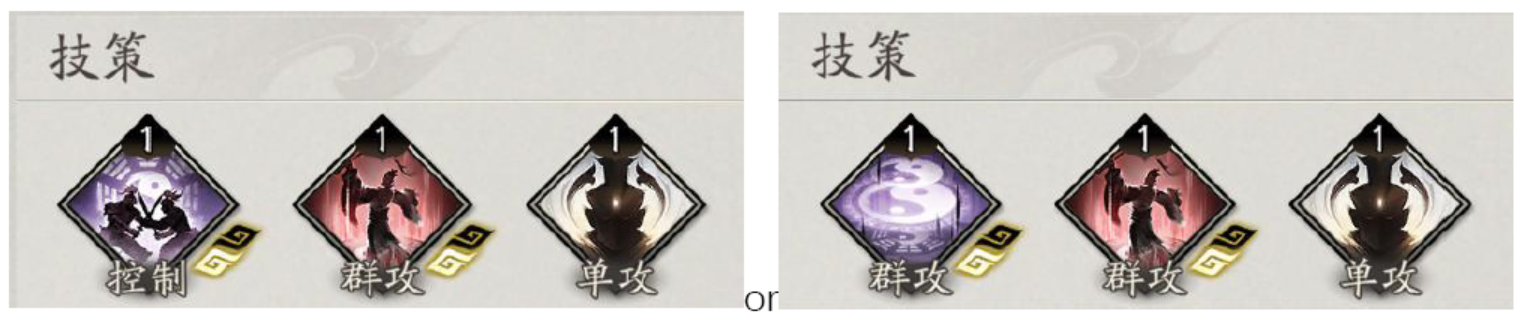 常见策士群攻技策,群体输出场景可选择携带,填充技能循环