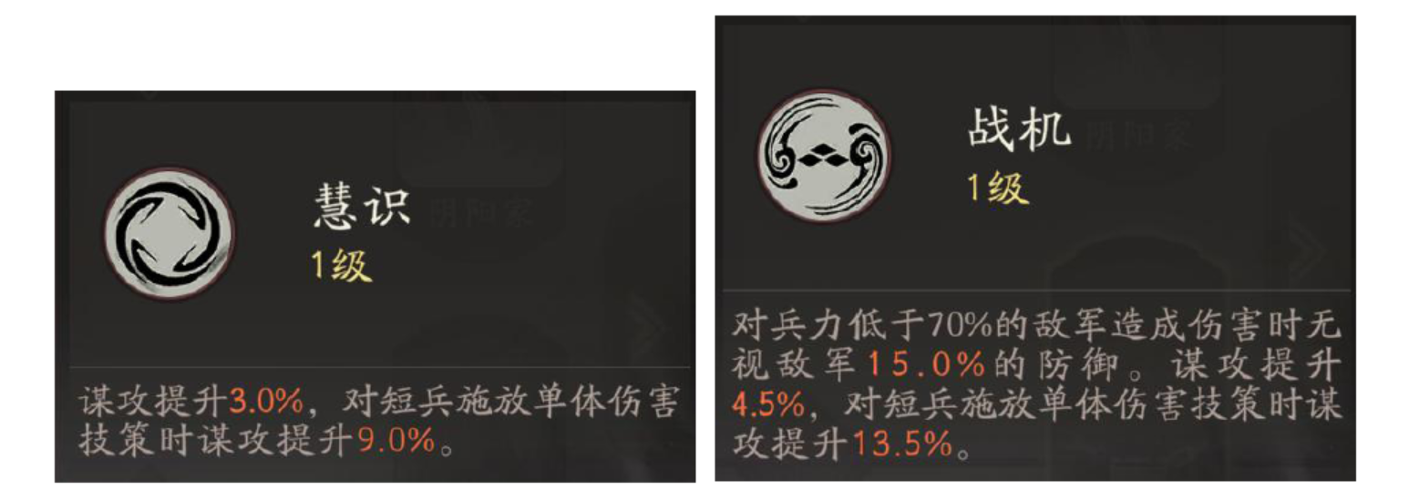 「玄机」常驻谋攻谋防提升,且针对长兵有伤害提升与受伤害降低效果。