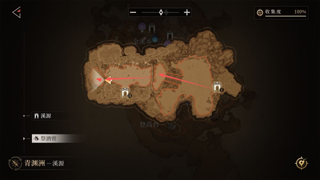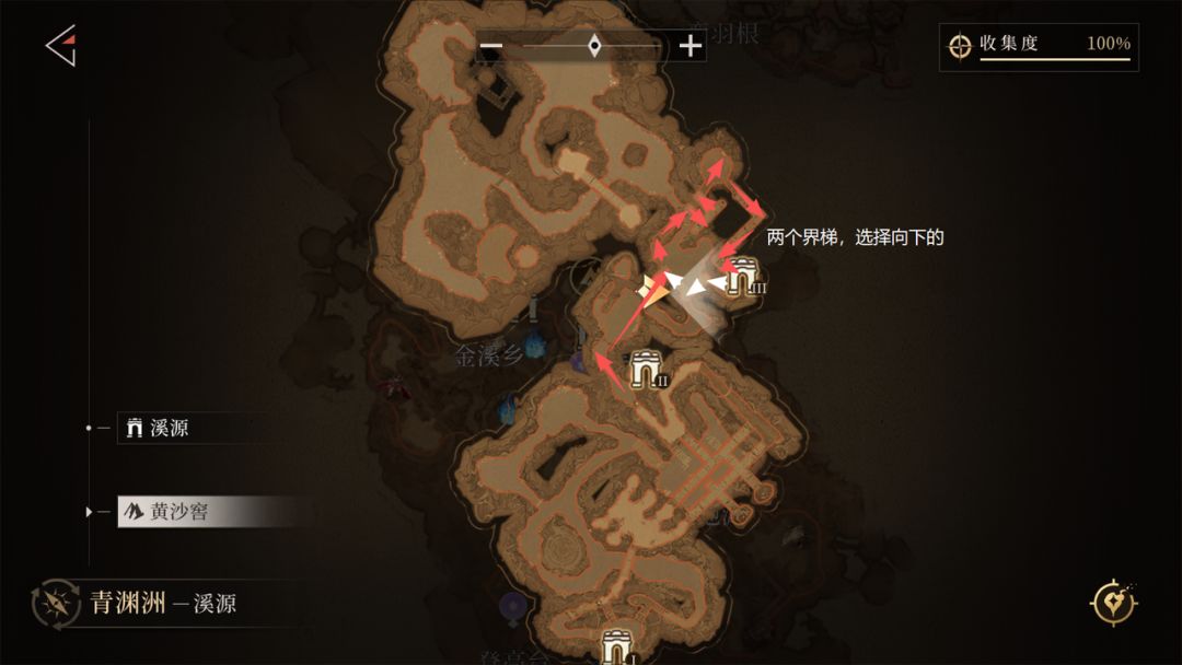 - 路线:从「金溪乡」传送点出发,按红色箭头行走(中途需上坡,位置较隐蔽)