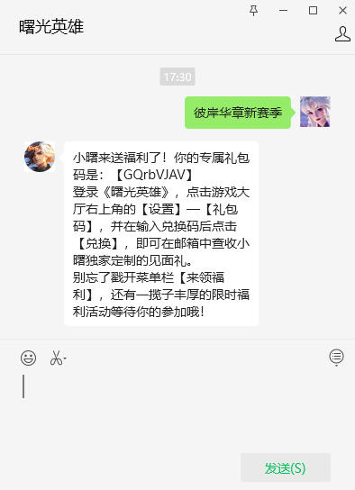 私信《曙光英雄》公众号新赛季暗号【彼岸华章新赛季】7个字,领取专属兑换码。数量有限,先到先得~