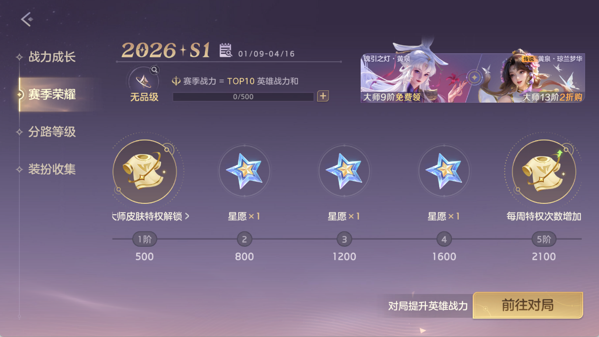 入口:游戏大厅-任务-大师生涯-赛季荣耀