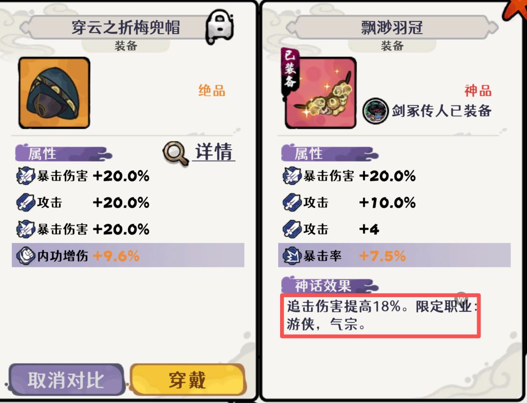 (+12%无前缀飘渺羽冠=穿云折梅头,若有14%、18%的直接带即可)