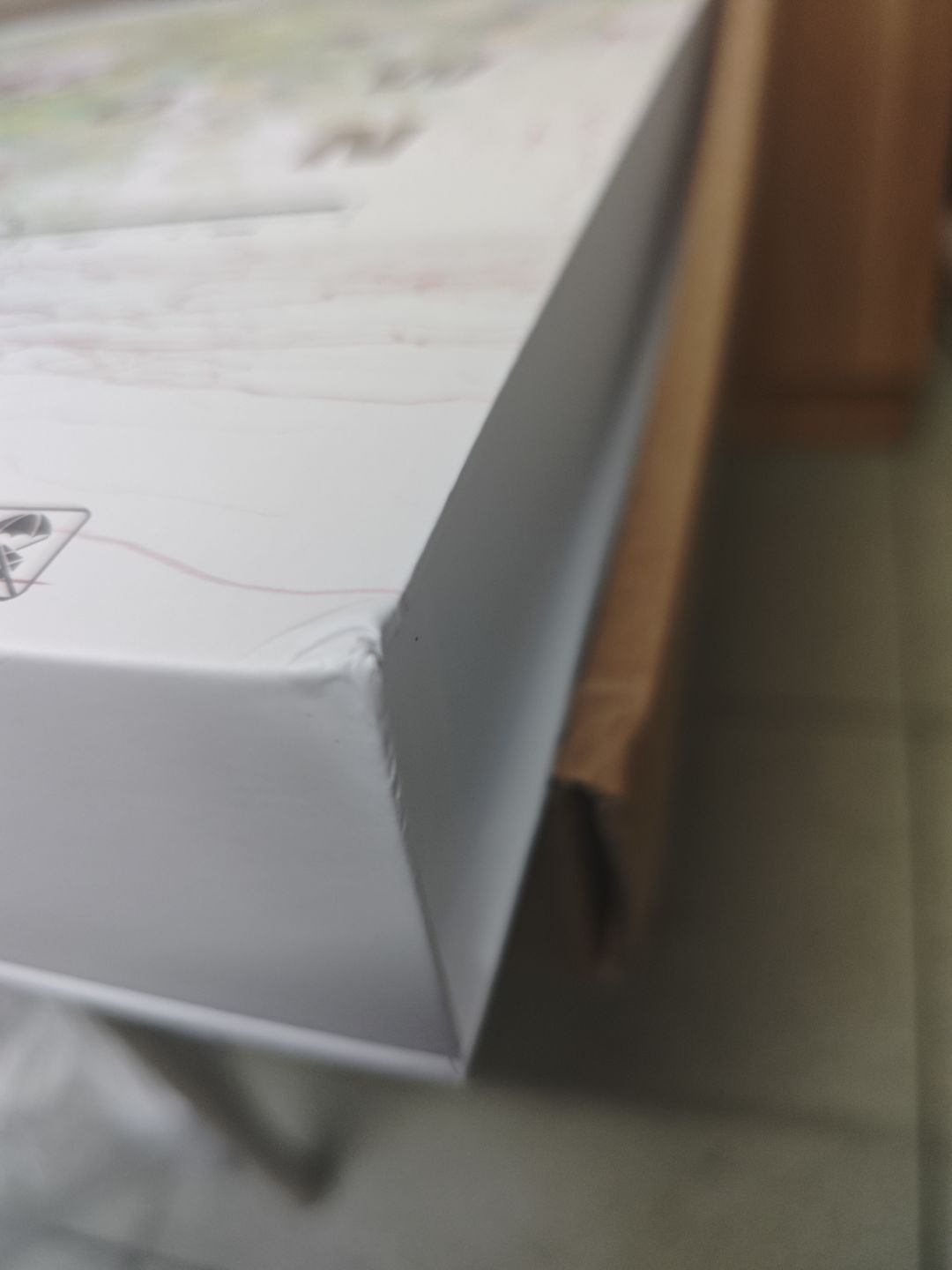 有个地方可能是运输的时候磕了一下,角角变皱了
