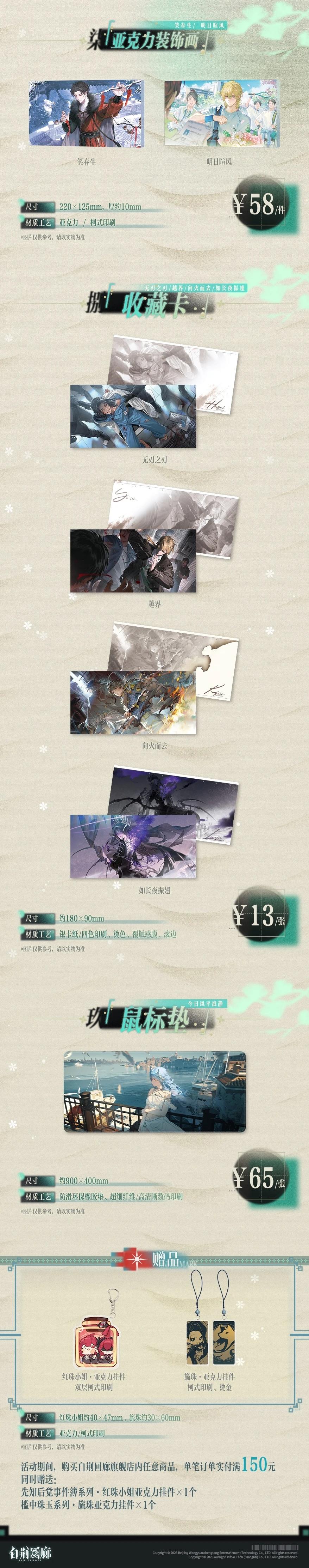 ※活动期间,购买白荆回廊旗舰店内任意商品,单笔订单实付满150元,同时赠送先知后觉事件簿系列·红珠小姐亚克力挂件×1个和槛中珠玉系列·旒珠亚克力挂件×1个