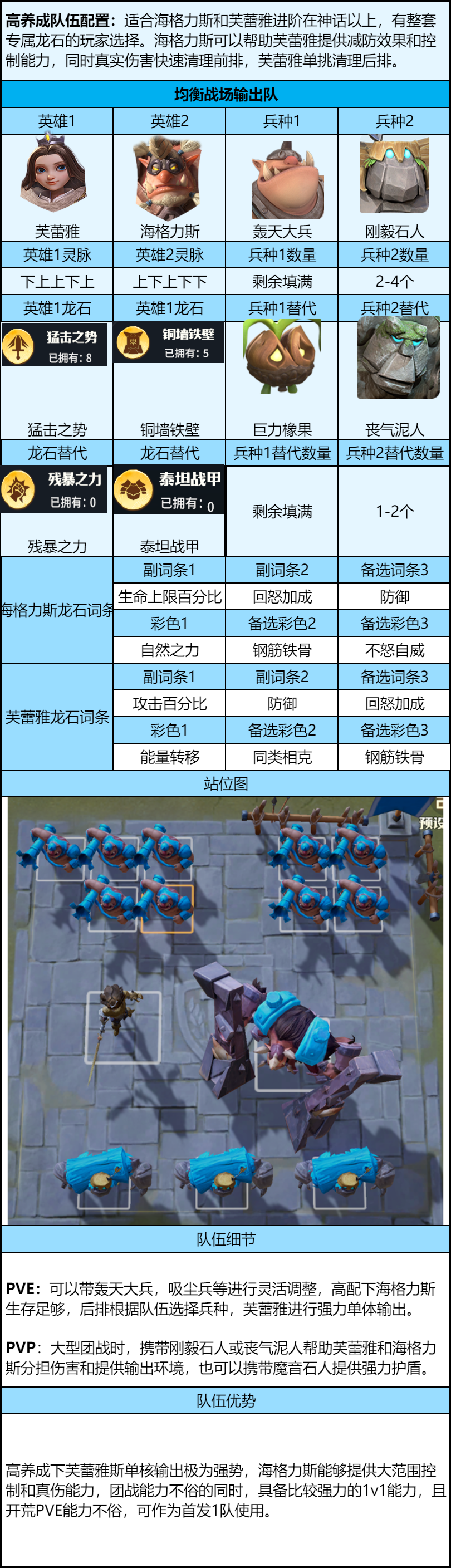 综合评价:肉度高的同时又有一定输出的肉盾英雄,克制前排肉盾单位,真实伤害和特殊护盾机制可以保证持久战斗的高收益,配置灵活,适合各类战场
