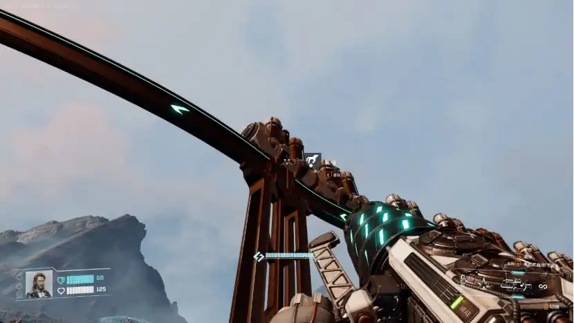 而且最让我吃惊的一点是本作的建筑限高,所有的建筑只能离地超过三格,再高就不允许玩家建造了,而且建筑与建筑之间不能相互交叠,这就导致玩家只能以平面的方式铺开自己的流水线,而且游戏内运输货物的轨道设计的有点抽象,在游戏中我用的最多的就是普通的轨道和十字形分流用的轨道连接器,至于其他的什么三轨、五轨的轨道设计纯属抽风。因为无论是三轨还是五轨分流,最终连接到机器上的只有一根轨道,所以选择多轨道并不会让货运加快。更何况这游戏的运输路线在轨道放下去的那一刻就固定了,甚至在后面如果想更改轨道路线,将原本的轨道拆除后连上新轨道,那条轨道上的货物会卡死在旧轨道和新轨道的连接处,需要人工将卡住的获取拿下来轨道才会重新运行,不然这条运输路线就会被卡住的货物卡死,所以在尝试过多种轨道设计后我摆烂了,直接点对点连接,不管美观了,只要货物能直达就是好运输路线。