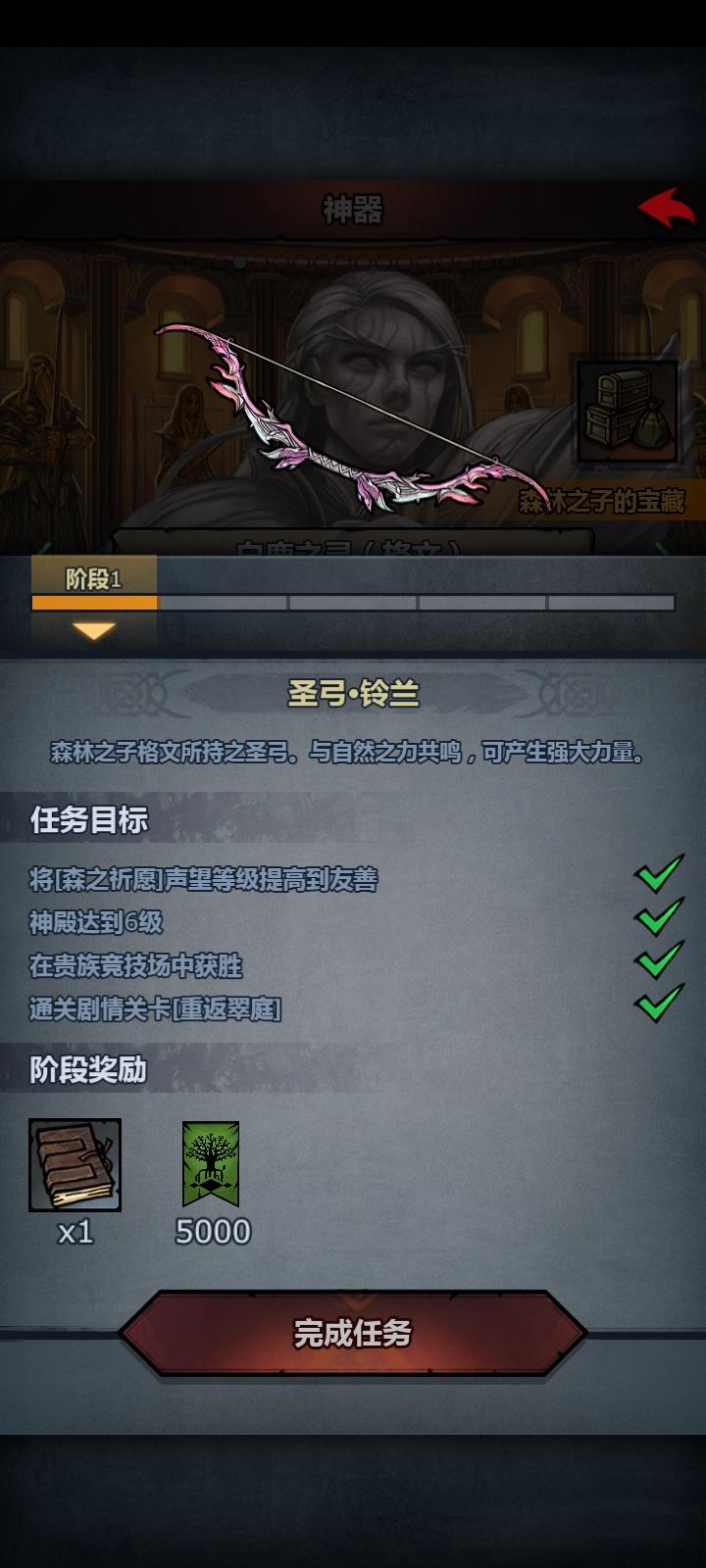 已完成神器任务铃兰弓一阶段,五千声望到手