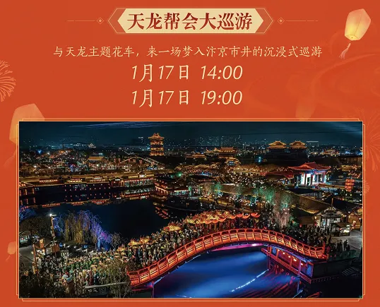 届时,这里不仅有地道的开封小吃、热闹的年味市集、声势浩大的天龙帮会巡游;