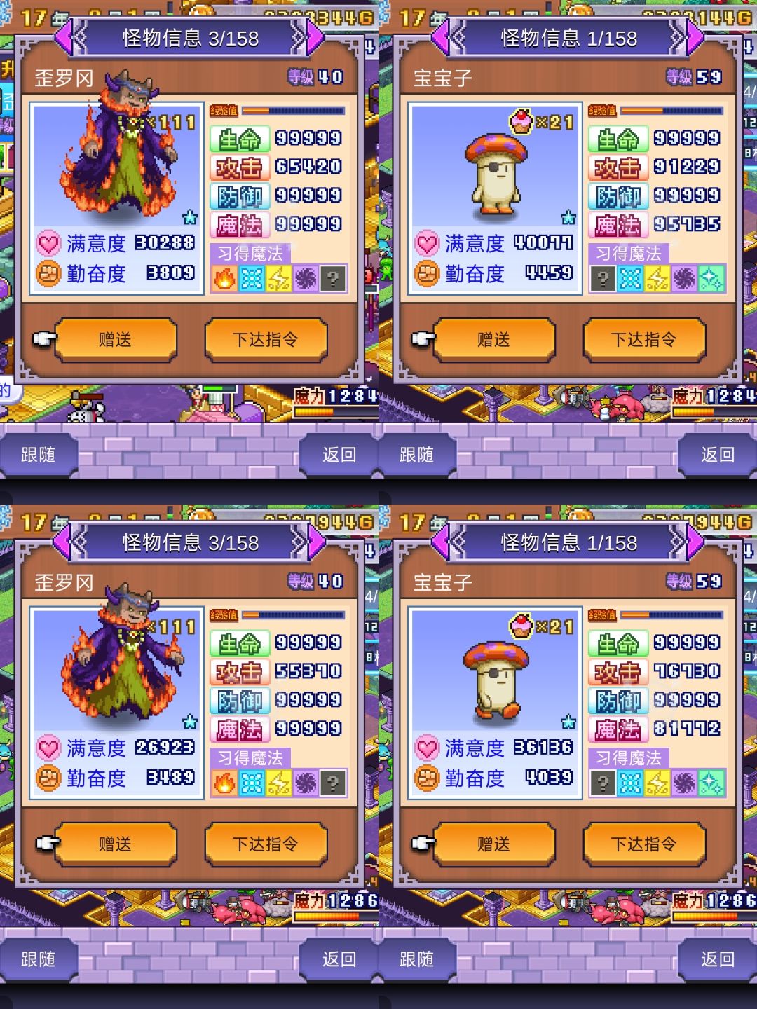 使用29种商店道具增加属性,上面金针菇,下面歪罗王