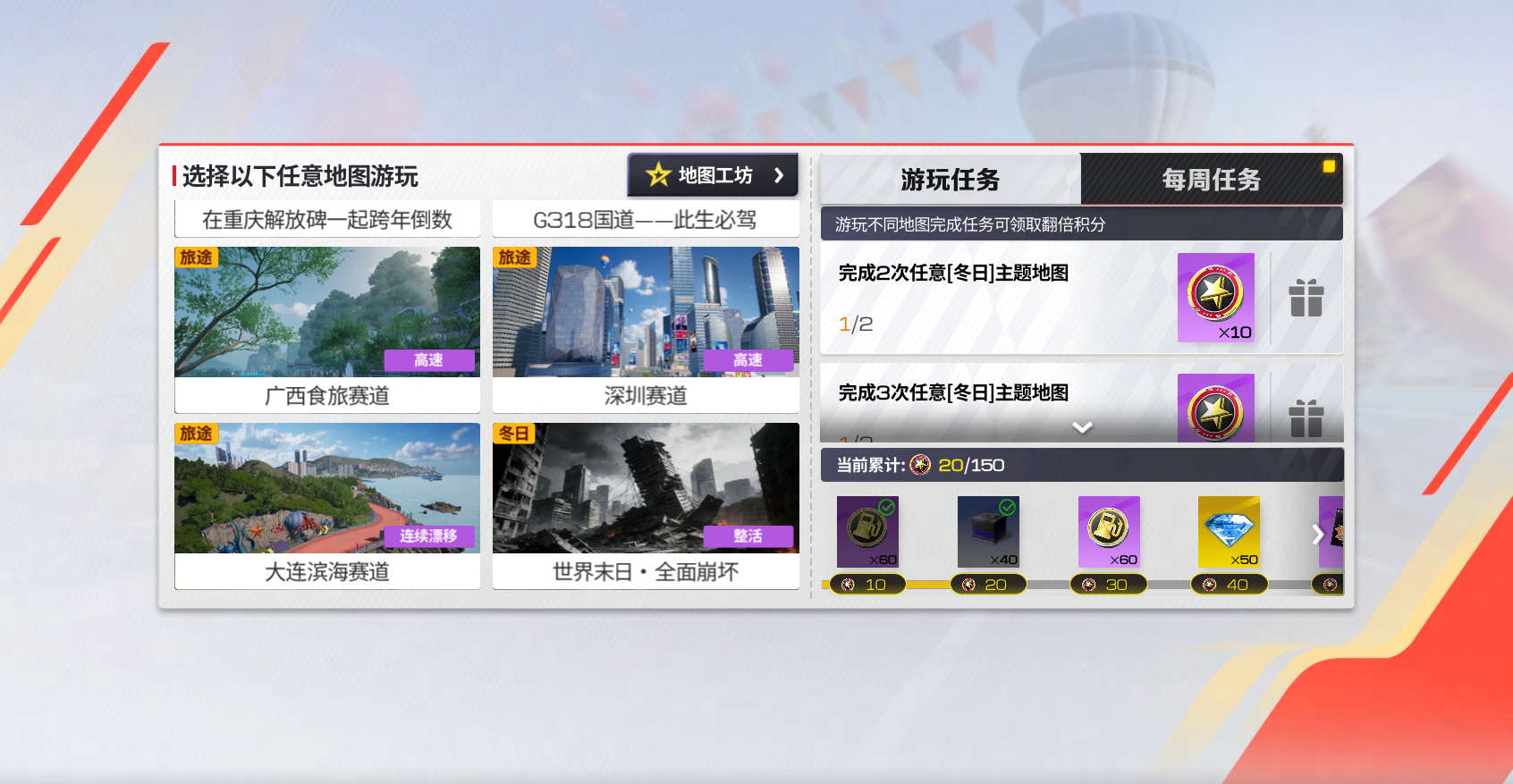 无论是穿越川藏天险的壮阔、沉浸滨海城市的浪漫,还是闯入末日幻境的刺激、漫步童话世界的治愈……6张风格各异的地图已备好,带你在工作日开启一场 “说走就走的赛车旅行”!