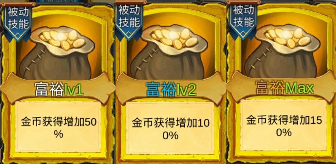 倍率详情:富裕倍率是一张lv1是1.5倍,两张lv1是2倍,一张lv2一张lv1是3倍,两张lv2是4倍,一张lv3一张lv2是5倍,两张lv3是6倍。
