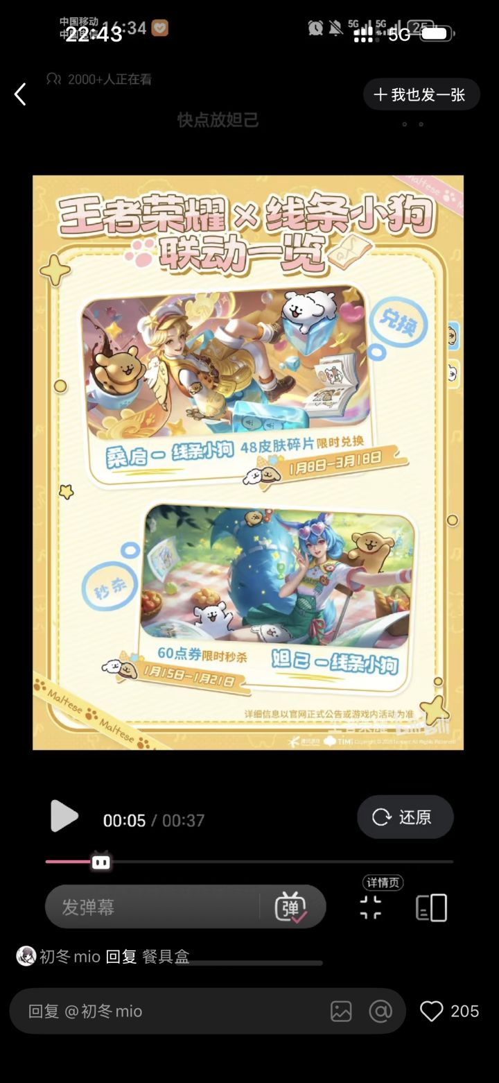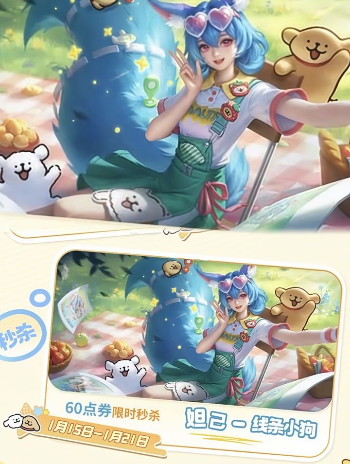 妲己线条小狗6元秒杀皮15日上线