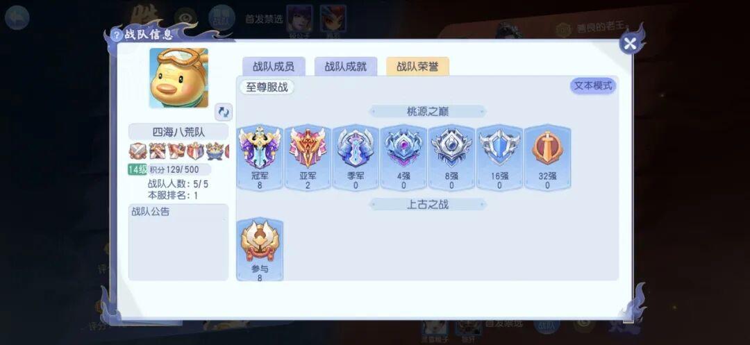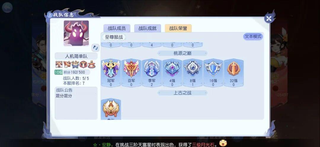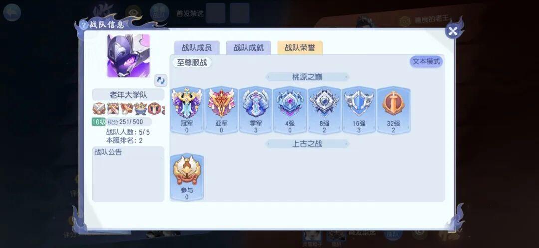 十里桃花的老年大学队,成员徐天堂、天堂之令、喵喵精灵、喵喵的宝藏、月白不咕咕。109级老牌战队,3次季军,从16强走到现在,实力强劲,期待他们下届的新突破。