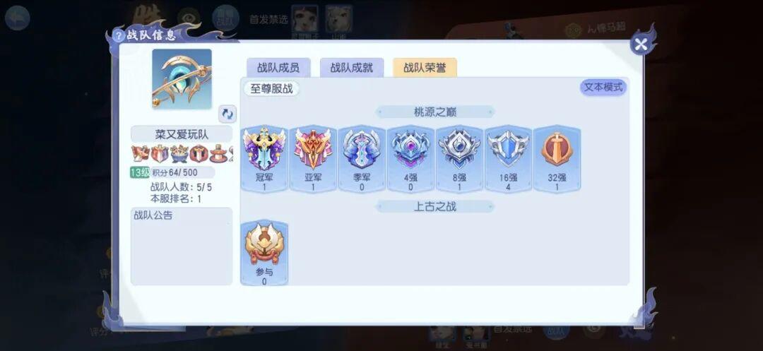 翩翩君子服务器的菜又爱玩队首夺桃源之巅冠军,队员有云璃、不谷谷、不知岁、沾衣未妨、反派大魔王。祝贺他们实现突破,希望继续巩固79级霸主地位。