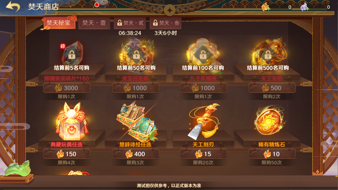 ● 焚天商店将迎来奖励更新!限定仙藏碎片二选一、穹宇星召券、典藏玩偶任选等珍稀道具等你来拿~