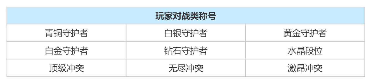 - 段位赛共设有青铜、白银、黄金、白金、钻石、水晶6个段位,玩家在对局中获得胜利可以提升段位。