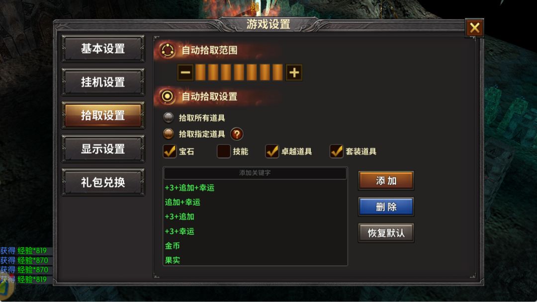 ❌ 不设 “指定拾取”:背包爆满 = 浪费刷怪时间,提前设置只捡高价值道具;