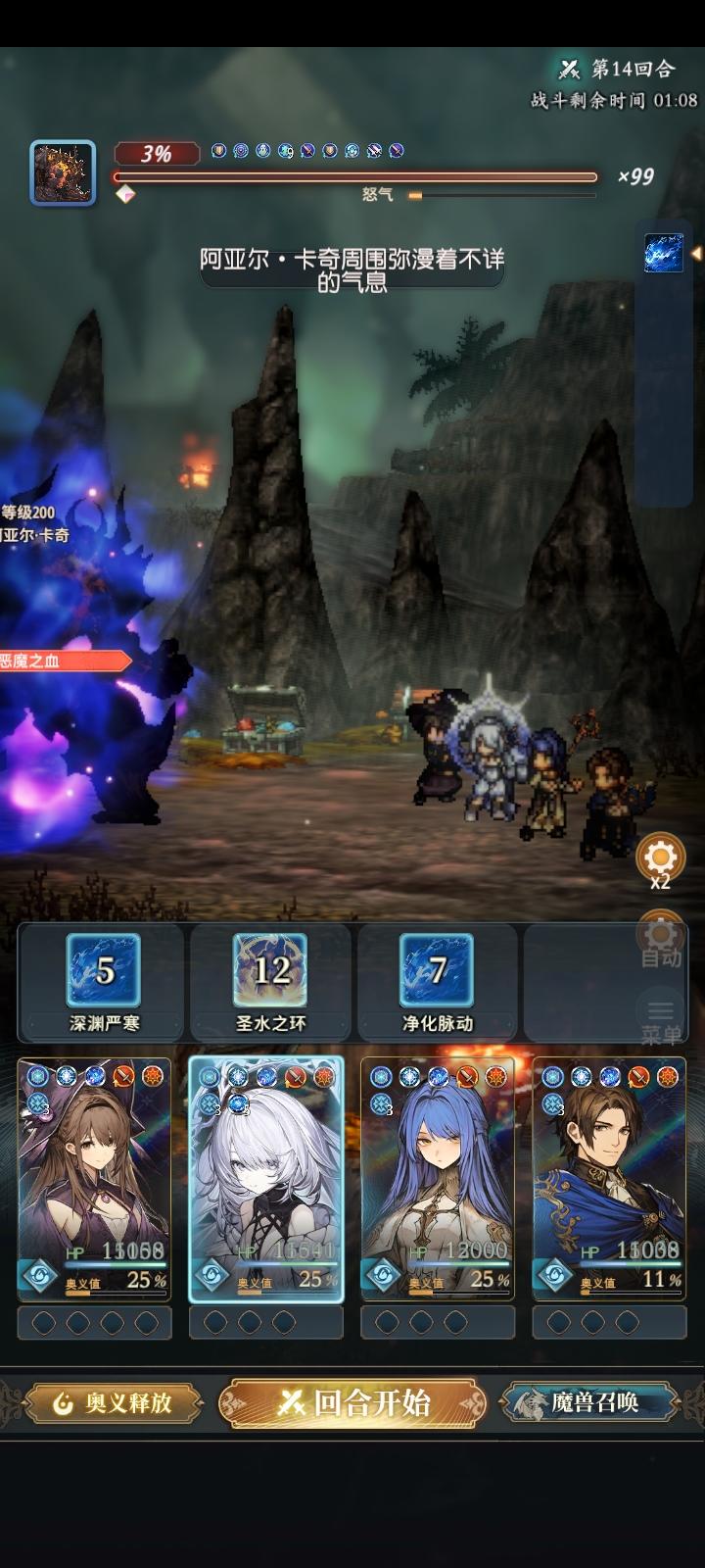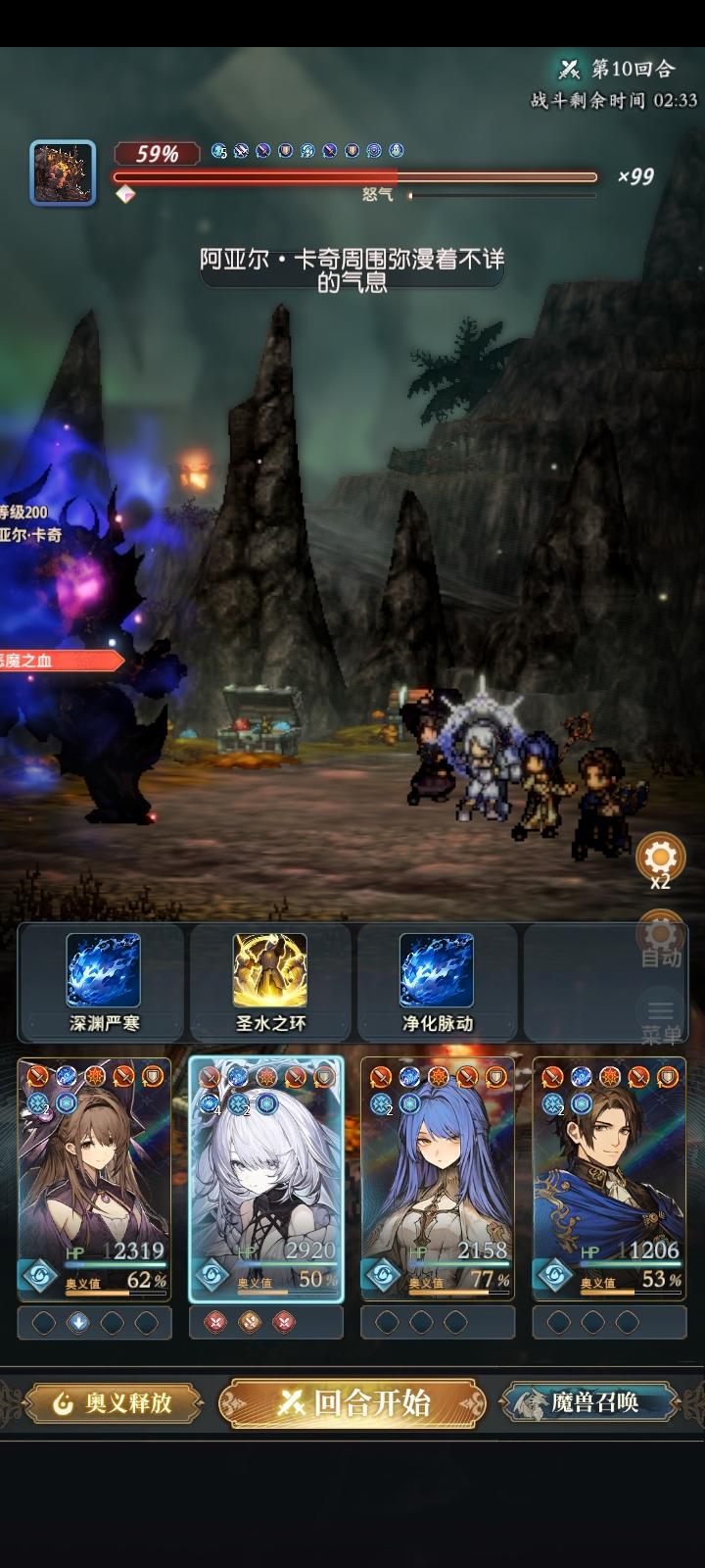 这里说下队伍缺点。主要就是怕控制,把鱼控住了,就开不了盾。整个技能轴也要往后推(不能五回合挂机刷盾挂机)。其他人被控了,奥义四连不能准时开(挂机的时候容易乱轴),奈法不能准时七圣词给鱼刷技能,也可能会寄。挂机的时候影响会很大。