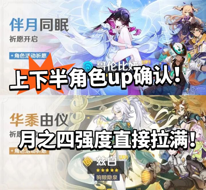 大的来了家人们!就在昨天原神月之四版本上下半UP池及陪跑四星角色正式公布了!直接引爆社区 疯狂展开热议!