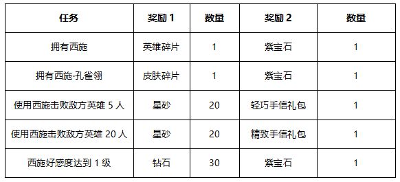 活动期间,西施英雄上线享限时折扣,西施皮肤集碎片免费获取,使用西施完成一系列任务,获取丰富回报。