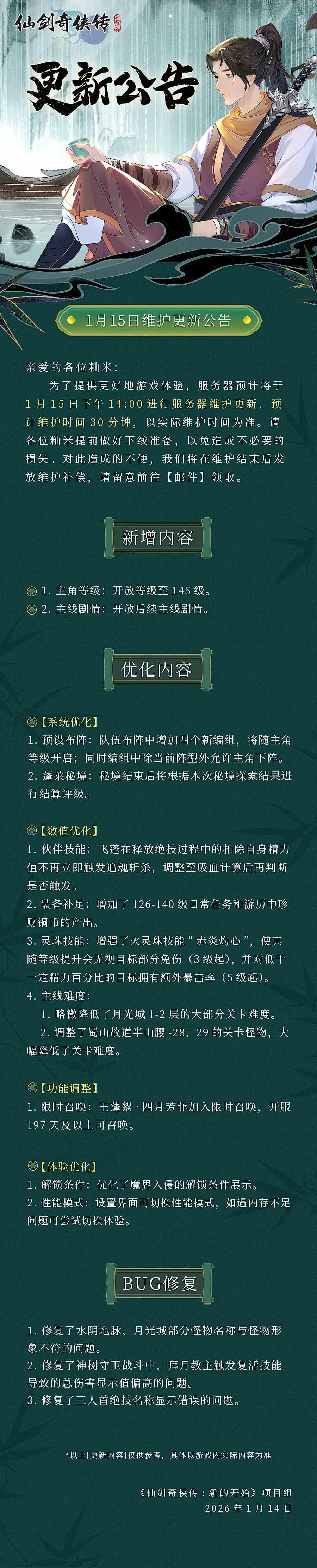 1月15日维护更新公告