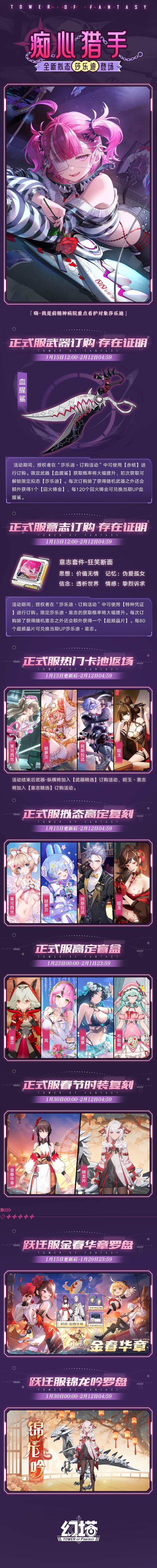 让莎乐迪看看藏了什么好东西~5.6.5「痴心猎手」1月15日正式开启。塔塔特意整理了一份版本速递,快来看看吧(p≧w≦q)