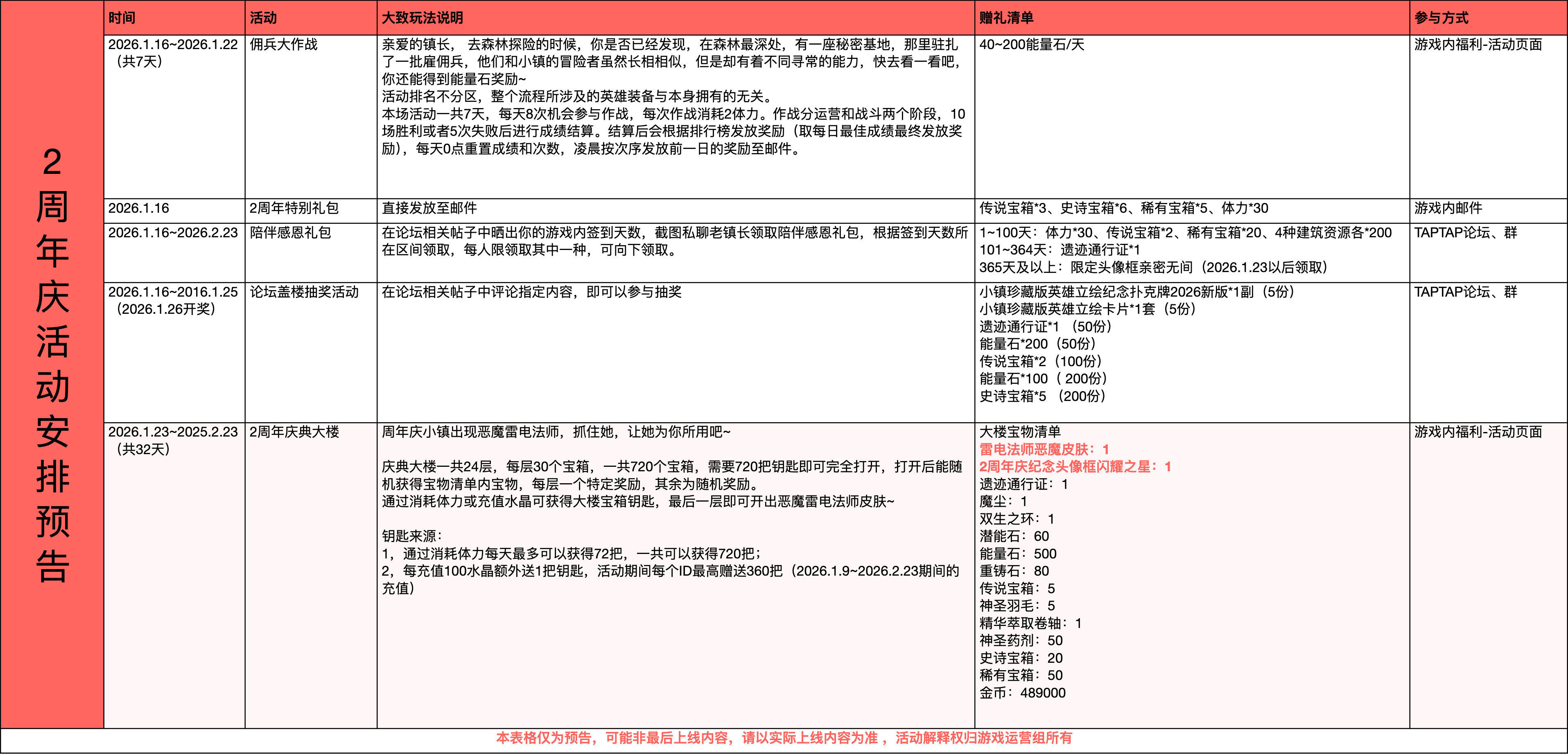 为了感谢大家,为大家准备了2周年的庆典活动(含游戏内和游戏以外),详情见下图