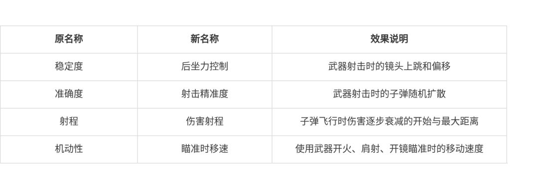 我们将对枪械属性描述进行优化,使其更贴合实际效果,具体改动如下: