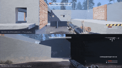 目前Steam平台上可以下载游戏的Pre-Alpha版本,完成度非常低,贴图和UI细节还很粗糙,武器、机甲和机甲的武器仅有一款可用,能体验的游戏模式也只有新手教程,以及在老《光环》等主机射击游戏中常见的本地多人分屏对战。