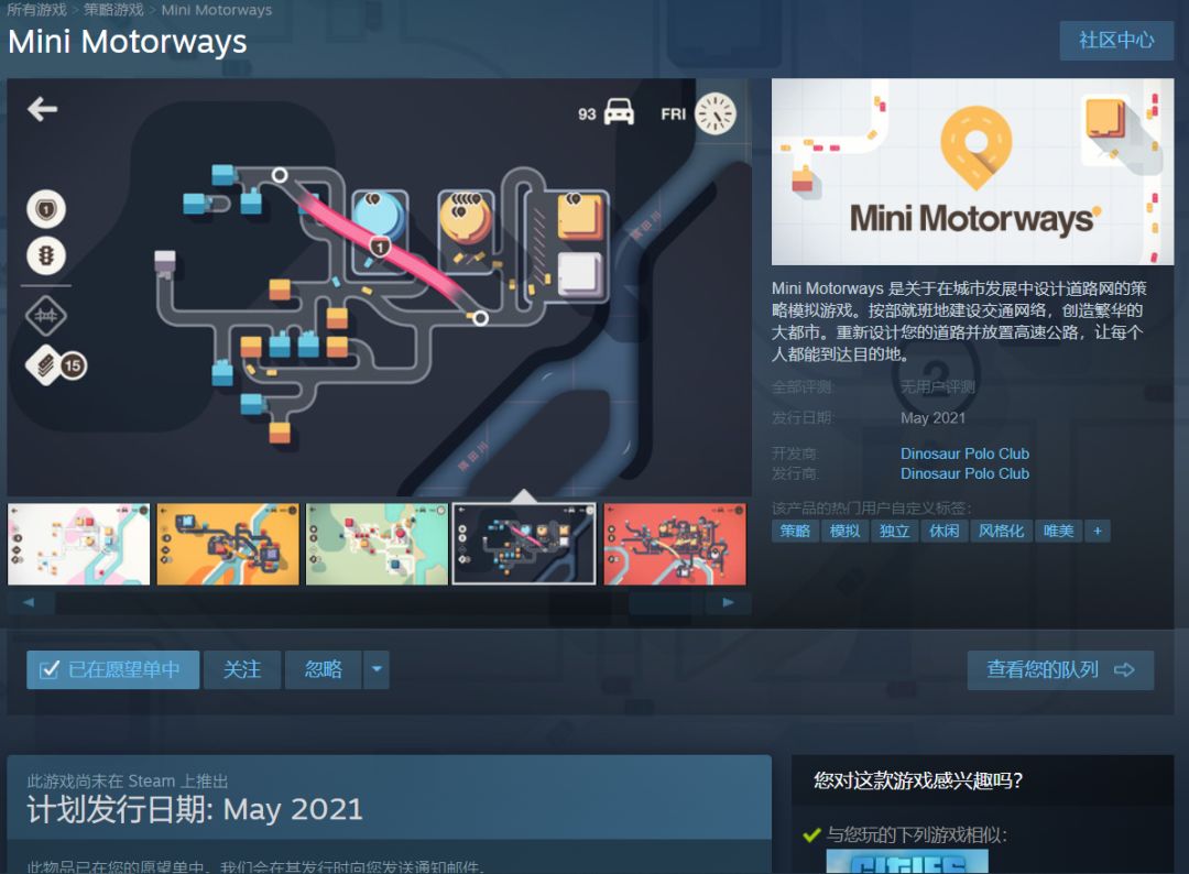 Mini Motorways将于2021年5月在steam发售(希望别跳票