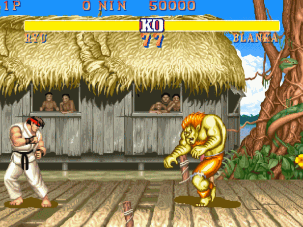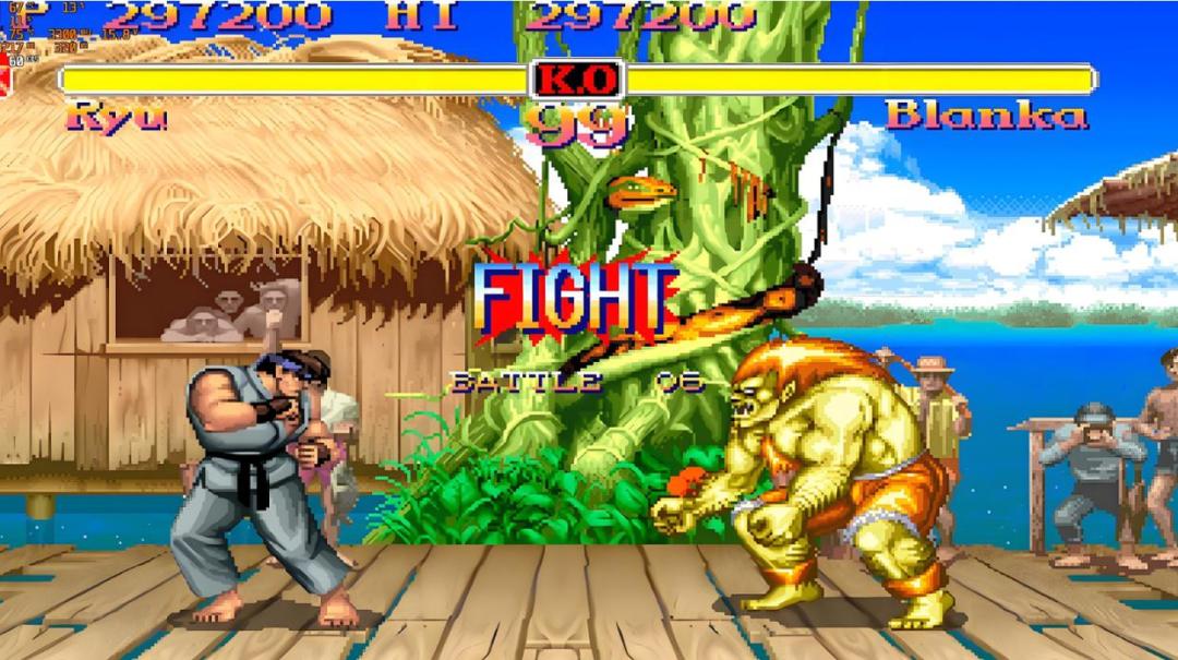 《街霸2八人版》里,大多数角色的技能伤害都特别高,除了沙加特的猛虎上升切,升龙拳是伤害排名第二的技能,基本上只要操作不失误,升龙拳命中之后都能带走对手一半的血量,有意思的是,如果你用升龙拳,正好命中了布兰卡的翻滚,那还会有效果加成,一招就能打掉布兰卡一半以上的血量
