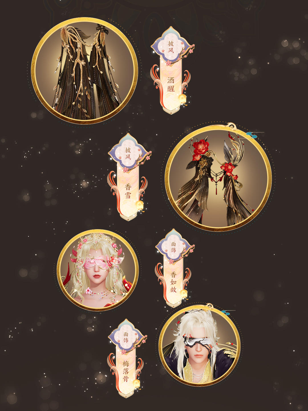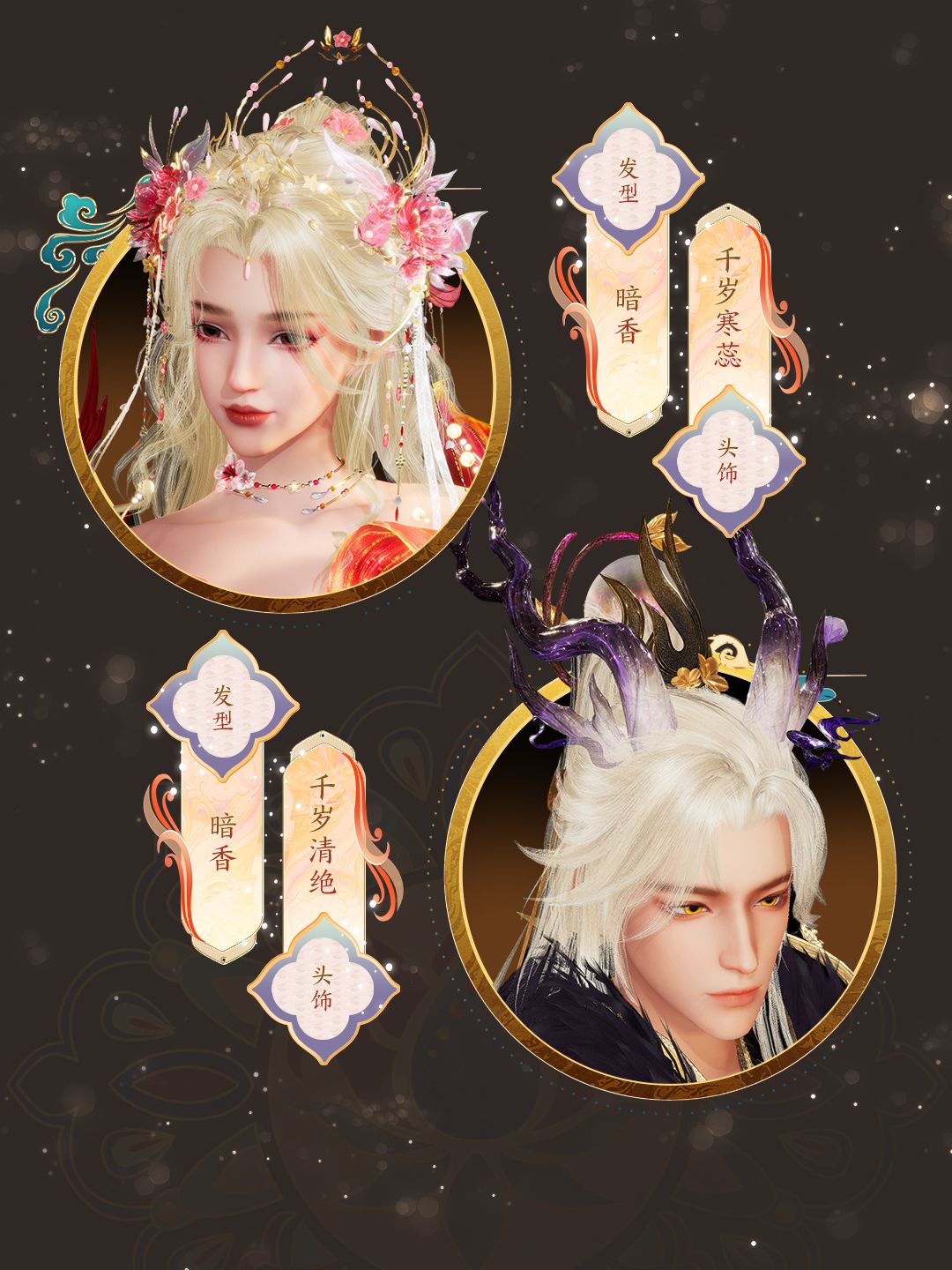 仙衣有灵全新主题外观「暗香入梦」外观细节曝光,更有同主题发型、双人坐骑,披风「香雪」「酒醒」、头饰「千岁寒蕊」「千岁清绝」、背饰「傲雪在梅」、面饰「香如故」「梅落骨」和同主题武器一同上线!