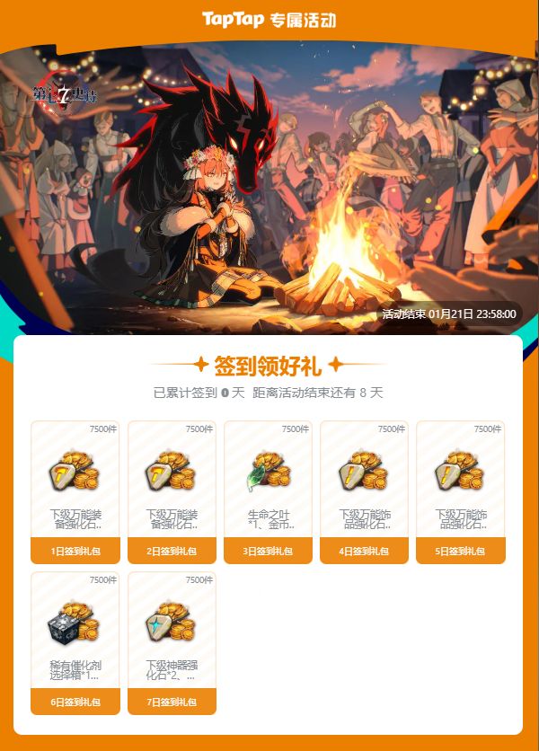 签到7日领取金币、强化石、生命之叶等礼物➡️点击