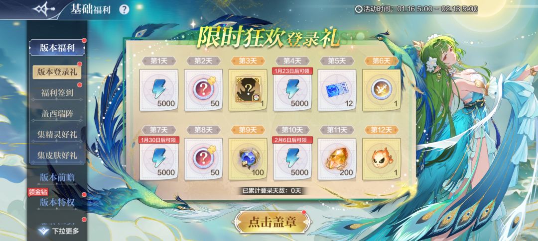 累签10天:体力*5000