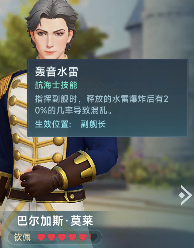 第一个是巴尔加斯,我们先看巴尔加斯的本体强度,首先巴尔加斯的主属性是指挥,副属性是炮术,他的位置只有两个,一是副舰长,二是水雷室,巴尔加斯在当副舰长的时候,他的指挥成长中规中矩,约等于T2档位(20碎片档)这让巴尔加斯驾驶的副舰天生比T1档位指挥的艾伦、艾玛、李新河的副舰会稍微脆一点,但是巴尔加斯拥有独特的释放水雷机制,在旗舰拥有高等级的水雷情况下(高级指挥官=25级水雷)巴尔加斯可以根据副舰百分比的战斗力获得旗舰80%-90%的水雷等级,也就是20-23级的水雷等级(如果开传奇船可以拥有更高等级的水雷甚至达到和旗舰同等级,这里不再赘述),在七海争霸和野外战斗的单挑场景,巴尔加斯和旗舰组成的水雷阵几乎是排船的噩梦,这也使得巴尔加斯成为了副舰长中非常强大的机制怪,完全弥补了他天生指挥成长低一些的问题,巴尔加斯在副舰长位置,是完全可以和T1档位的副舰长竞争的,然后巴尔加斯还有一个位置是水雷室,在后期的pvp中,大多数炮船都会选着加装水雷室来增强水雷的伤害,在海洋争霸工会战国战这种多人的环境下,巴尔加斯是可以放在旗舰的水雷室,来激活自身的水雷强化技能为旗舰水雷增加伤害,虽然水雷室看的是委任航海士的炮术属性,巴尔加斯的炮术属性并是特别高,但是一个高养成的巴尔加斯的炮术属性+自己技能的增伤加持下依旧是水雷室所有委任中的最高水雷伤害加成
