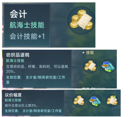 第二个航海士是诺拉,先来看诺拉本体的强度,诺拉主属性为商业,副属性指挥,诺拉拥有全游戏最高的商业数值,为t1档位(40碎片),其核心技能议价幅度是个非常强大的效果,3%的议价幅度加成几乎无可替代,但是此技能也有个弊端,就是它的生效舱室比较的烂,税务研究室是个没卵用的舱室,一般我们跑商出货大概率会去选择自己国家的优势或者占有的港口,所以商船造税务研究室性价比并不高,而主计室虽然能带来议价成功率的加成,但是在后期高会计和社交技能的加持下,我们只需要随便抬抬一般都能到顶(再不济还有印章和香水)所以议价成功率并不能为你来带什么实际的跑商加成,而最后的工作室,则成为诺拉常驻的岗位,在委任工作室的时候,诺拉的强大商业属性能给你带来大量的三系辅助,三系辅助不仅是你生产制造的时候会提升收益,你在工坊委托生产的时候,三系辅助也会带来生产速度增益,这可以让你跑金工银工单手剑来带不错的提速,跑大亨的时候生产砂糖之类效果也很好,所以诺拉几乎是玩商必备航海士