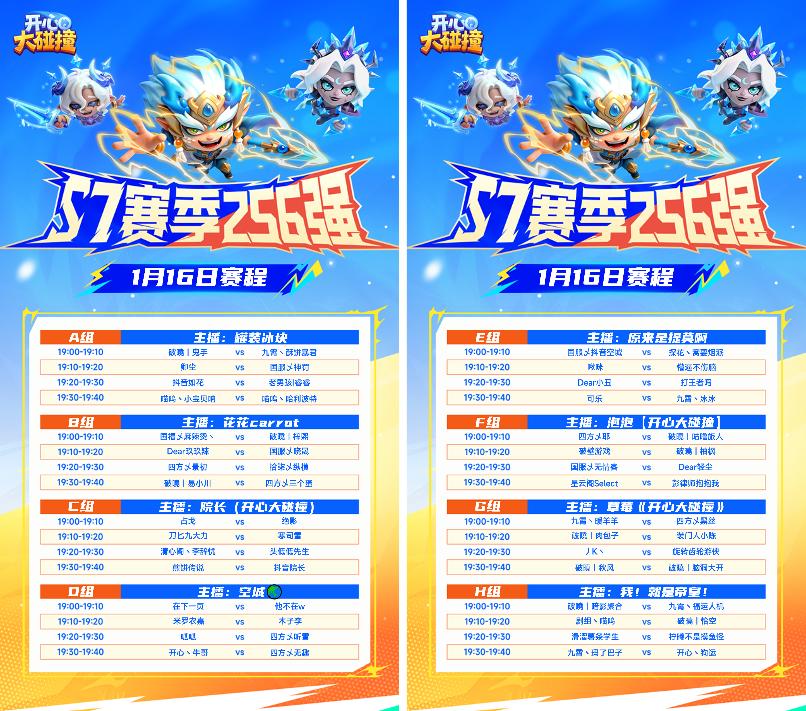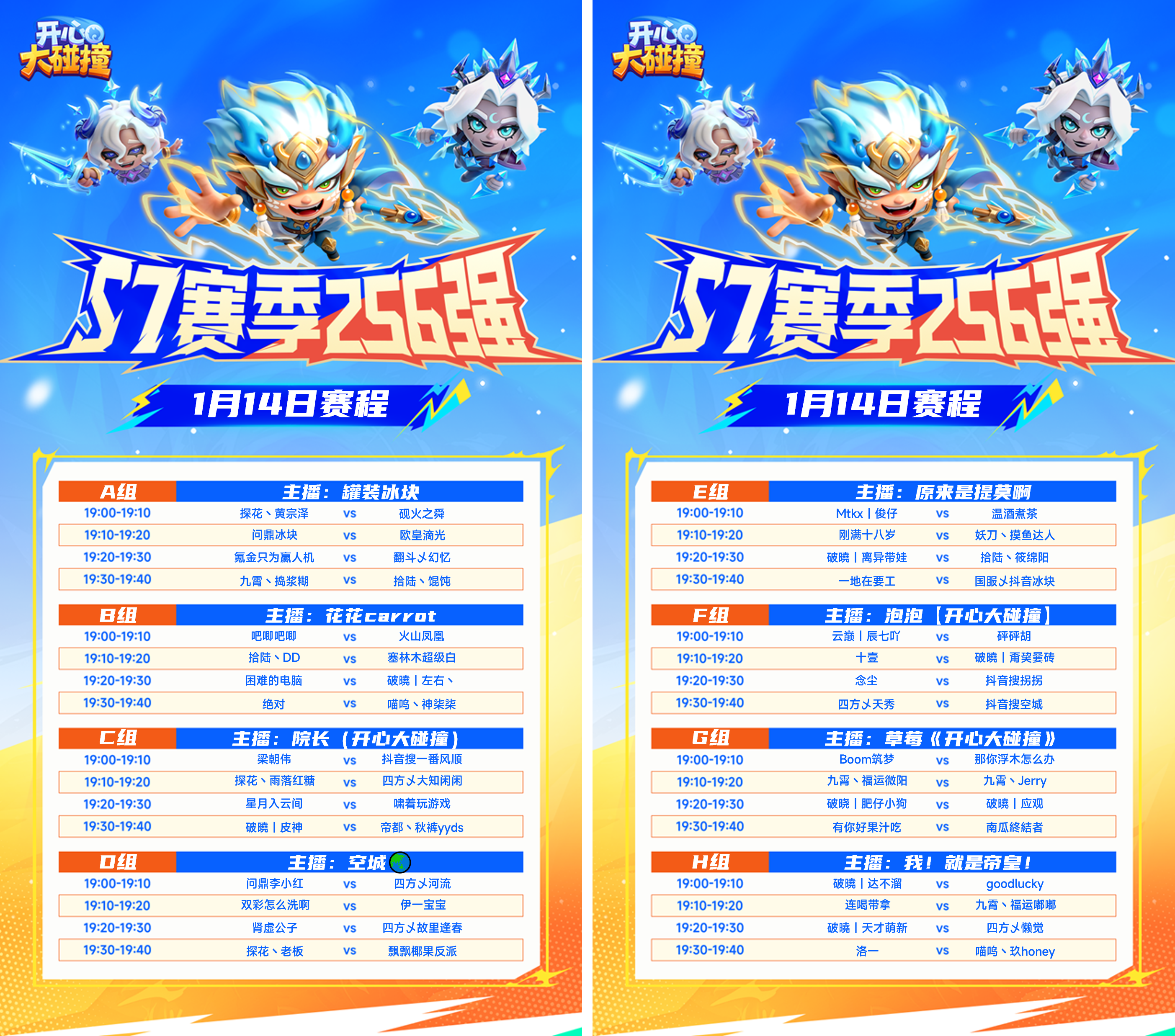 1月13日-16日每晚19:00-20:00,8大人气主播同步开播,带你多视角直击战局!