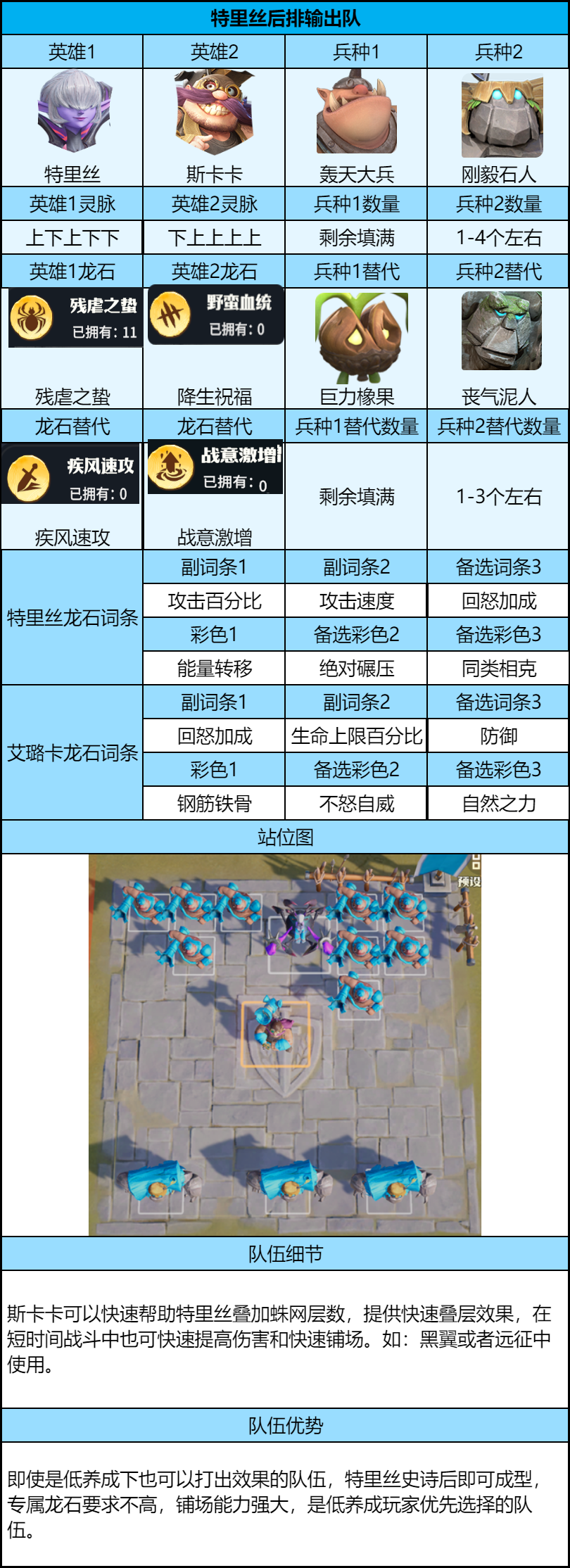 低养成队伍体系尽量偏重团战体系,保证前两队有一定单军能力的情况下,后续队伍偏重团战养成。