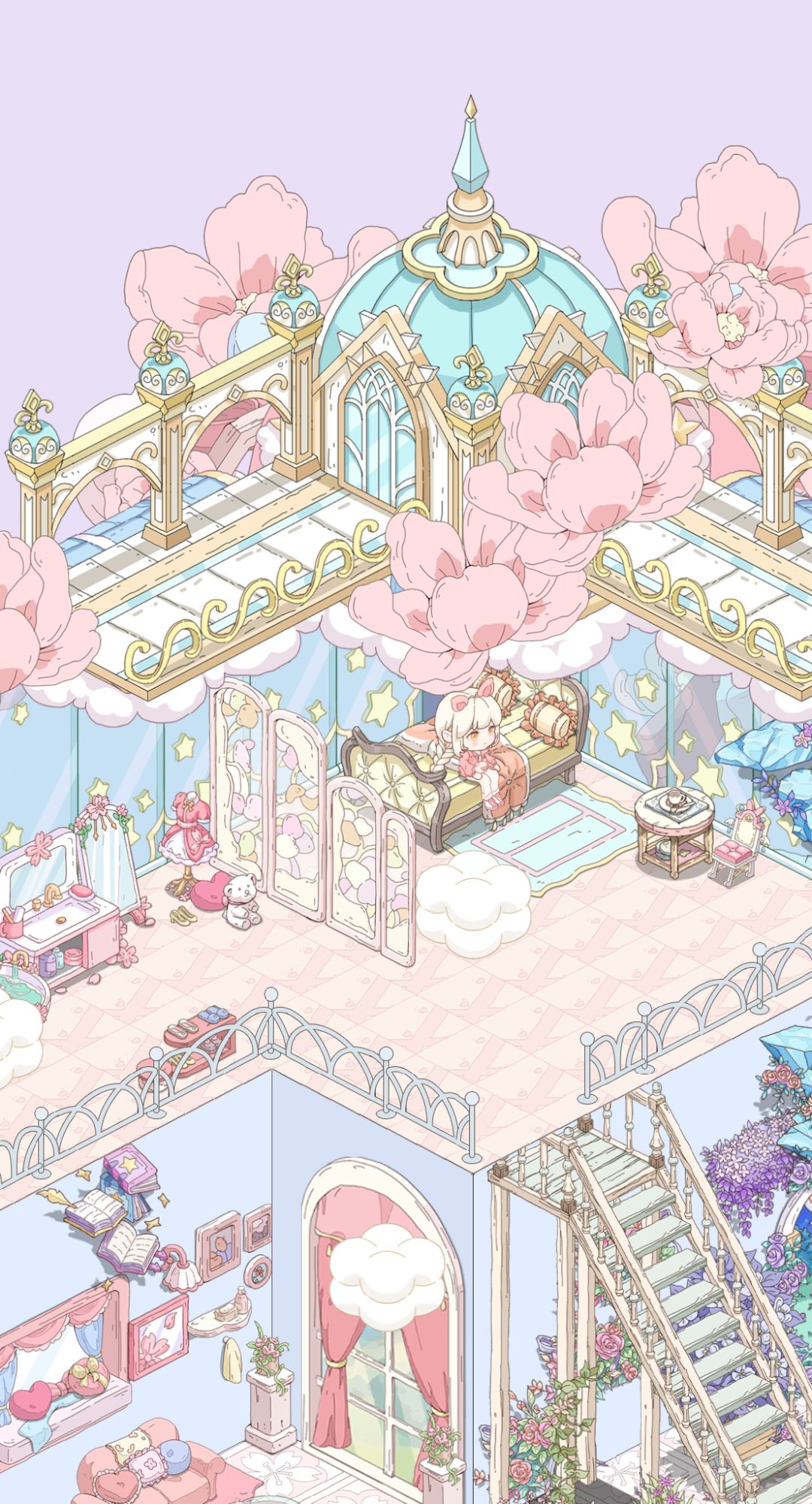 粉蓝童话城堡悬于梦境,彩蝶绕着雕花穹顶,软萌沙发与旋转楼梯翩飞,翅尖拂过精致的梳妆台与云朵装饰,把温柔的好梦揉进城堡的每一个角落。 蝴蝶落处,便是甜梦抵达的时刻。