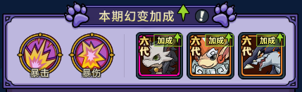 5、活动期间,上阵符合条件的契约兽即可在对战时获得幻变加成Buff效果;具体加成的条件及效果需要在玩法界面的“本期幻变加成”说明中查看