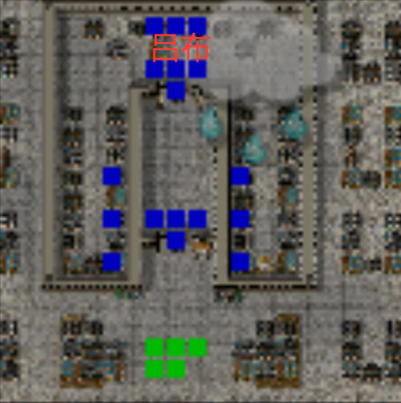关羽,张飞——吕布(要都相邻,退,过关)