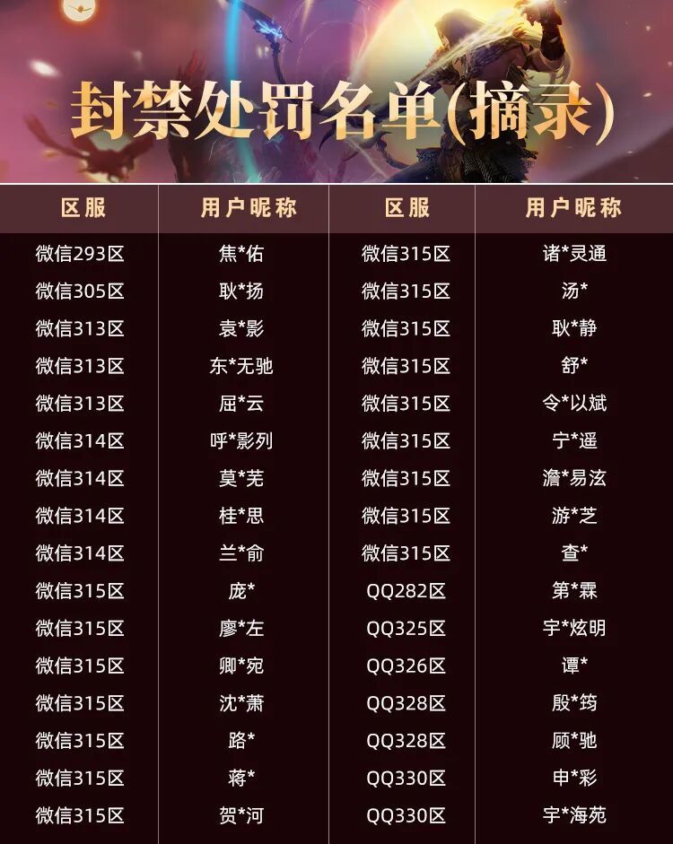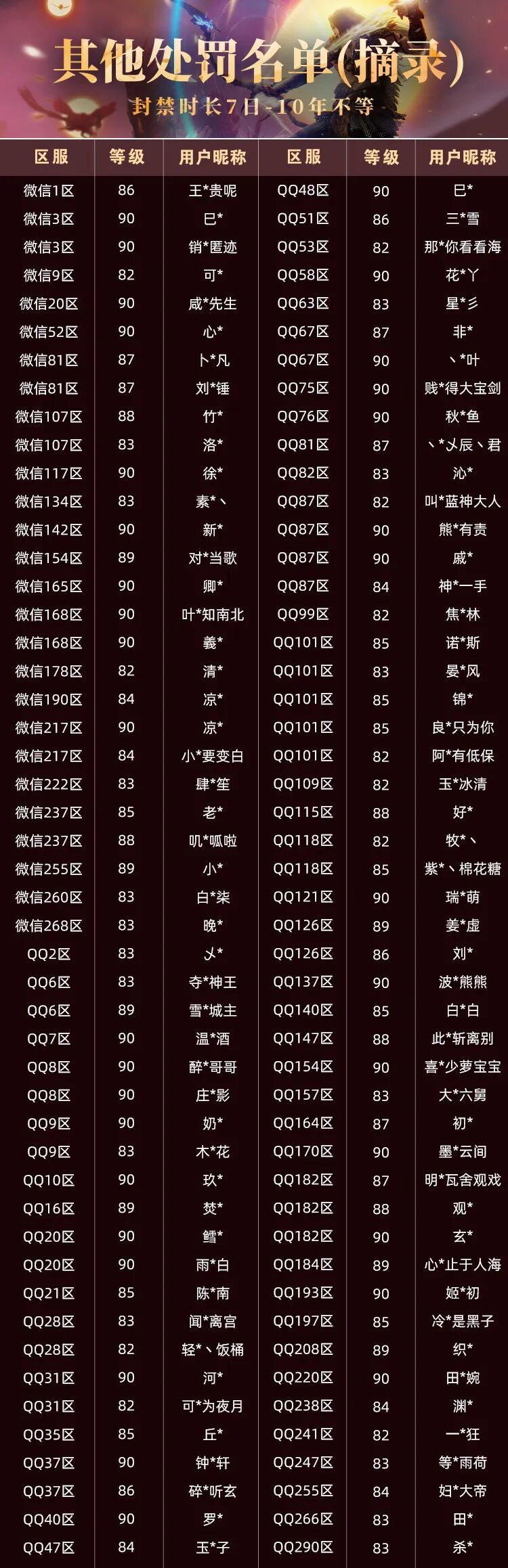 以下为12月经官方核实后给予封禁十年处罚的账号信息: