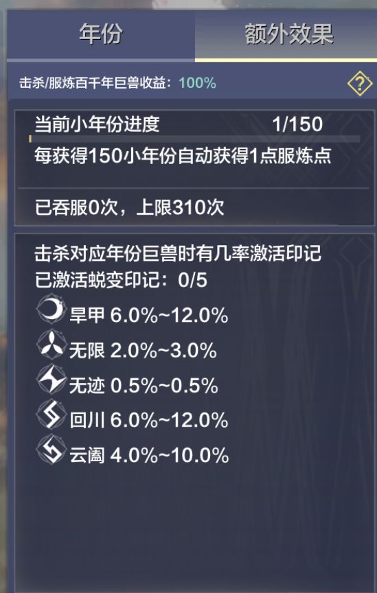 巨兽的增产让小年份系统的减负更加切实生效,印记的获取也更高效了~