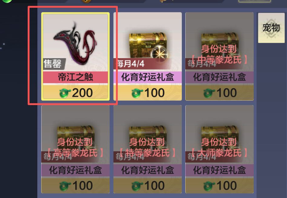 而豢龙氏商店里,我们准备了大家呼声非常高的化育丹礼盒,以及帝江之触,让旅者们的宠物入魔更方便!