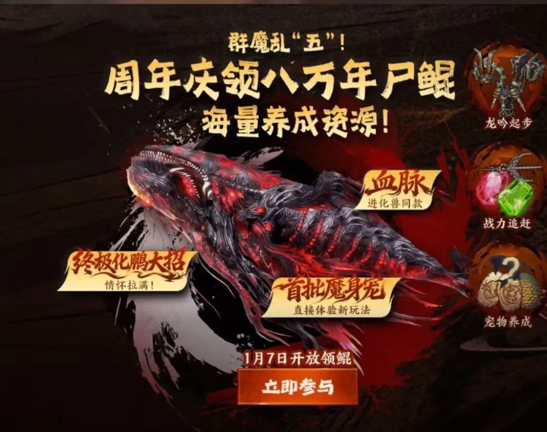 1、魔化事件---触发后,将有概率开启太浊之隙、出现千年、万年、三万年/五万年/甚至是八万年的魔化巨兽;